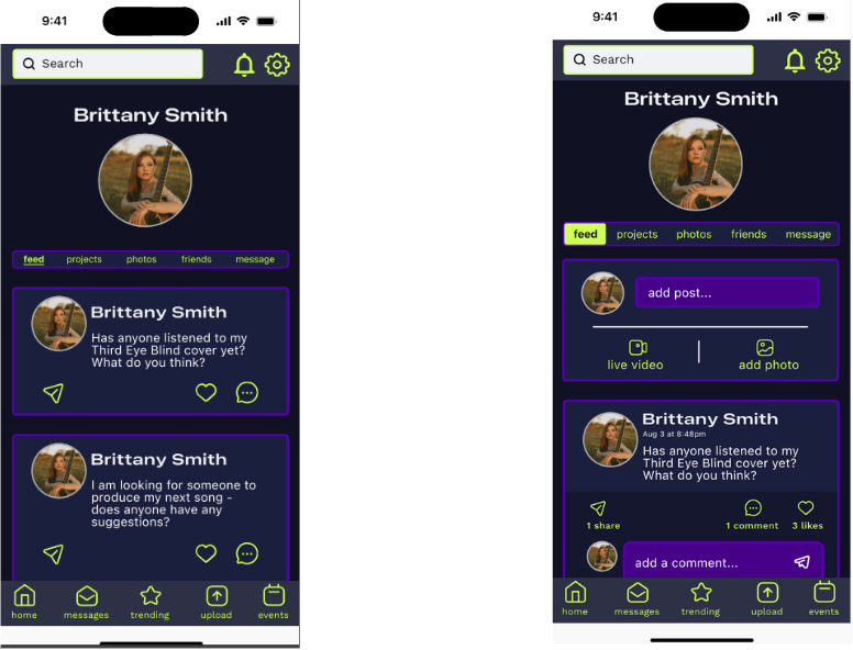 To validate my design, I conducted 5 moderated in-person tests with musicians who live in the city of Erie, Pennsylvania. The participants were asked to walk through the prototype on Figma. The tasks I asked the participants to complete included