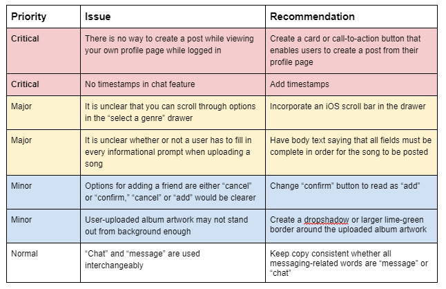 All of the participants were able to complete the tasks. However, I did get some valuable feedback regarding UI. I organized these features by priority and made changes to the prototype. I looked forward to amending the designs and seeing what feedback I got for my next series of usability tests.